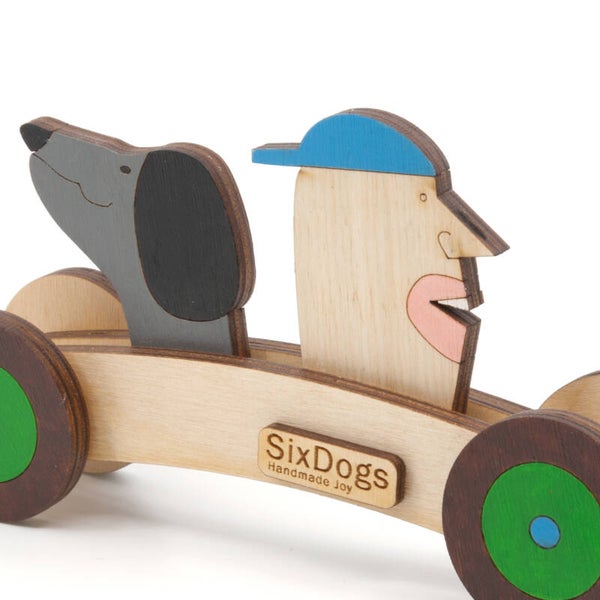 Het object is een uniek SixDogs-ontwerp en middels verfijnde technieken in eigen werkplaats duurzaam vervaardigd. De kleine series maken mogelijk dat ieder object individuele aandacht krijgt en persoonlijk wordt afgewerkt. De soepel rijdende car wordt gemaakt van duurzaam berken en in verschillende lagen opgebouwd. Ieder onderdeel wordt apart geschilderd en gelakt alvorens het geheel wordt gemonteerd.