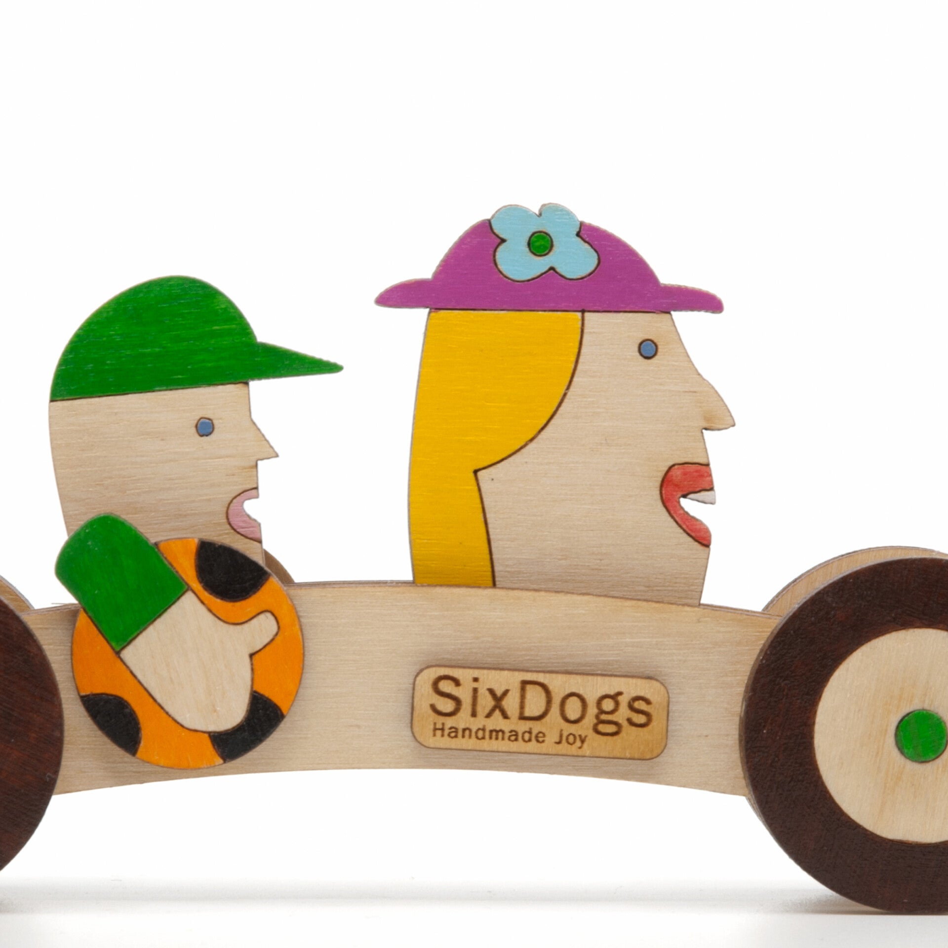 Het object is een uniek SixDogs-ontwerp en middels verfijnde technieken in eigen werkplaats duurzaam vervaardigd. De kleine series maken mogelijk dat ieder object individuele aandacht krijgt en persoonlijkwordt afgewerkt. De soepel rijdende car wordt gemaakt van duurzaam berken en in verschillende lagen opgebouwd. Ieder onderdeel wordt apart geschilderd en gelakt alvorens het geheel wordt gemonteerd.