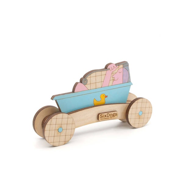 Het object is een uniek SixDogs-ontwerp en middels verfijnde technieken in eigen werkplaats duurzaam vervaardigd. De kleine series maken mogelijk dat ieder object individuele aandacht krijgt en persoonlijk wordt afgewerkt. De soepel rijdende car wordt gemaakt van duurzaam berken en in verschillende lagen opgebouwd. Ieder onderdeel wordt apart geschilderd en gelakt alvorens het geheel wordt gemonteerd.